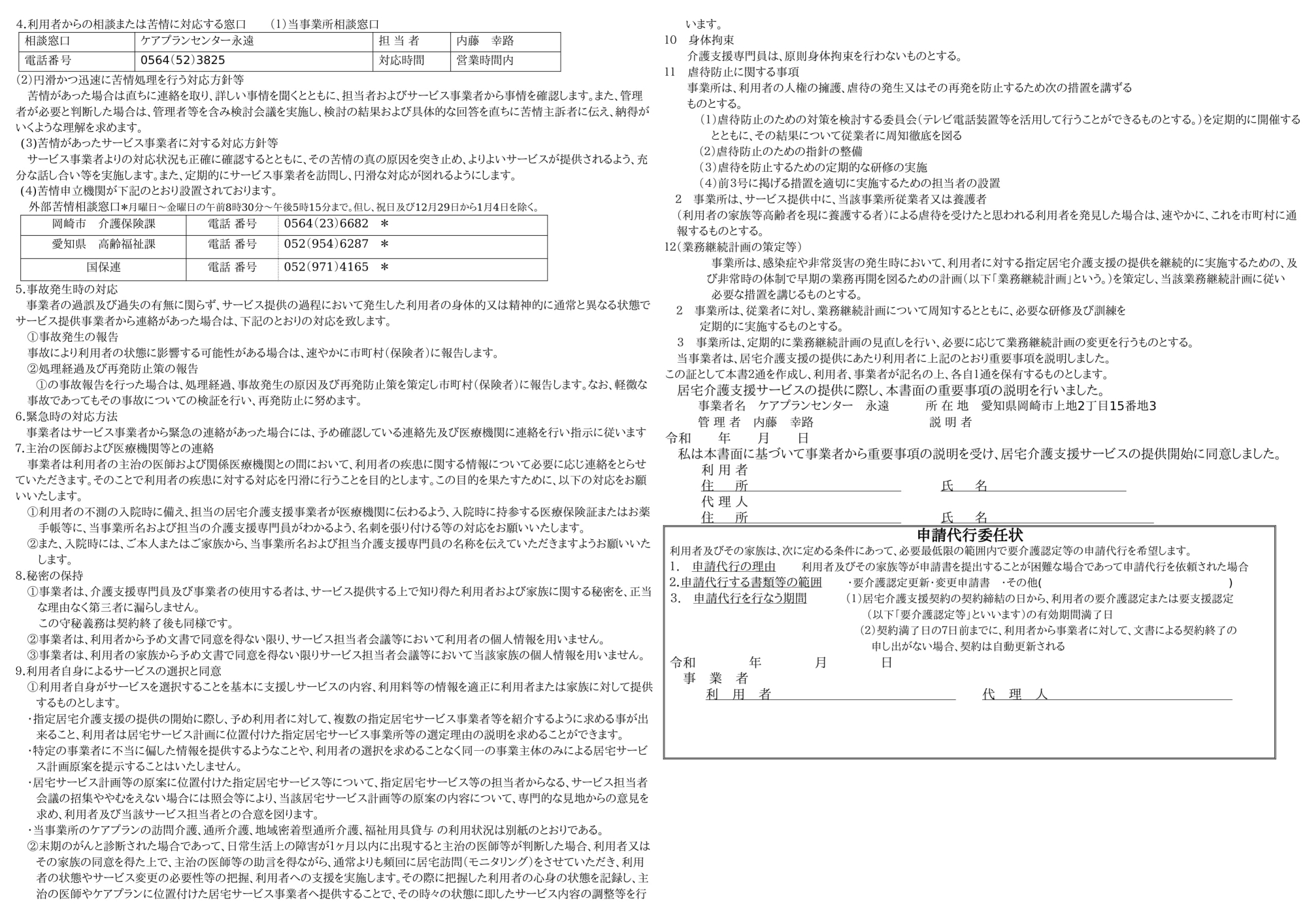- サービス計画の内容・利用料・保険の適用等を丁寧にわかりやすくご説明